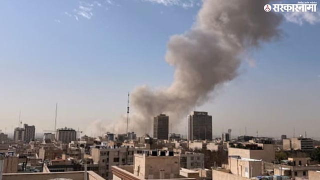Smoke rises after reported strikes as tensions escalate between Israel, the US, and Iran, raising fears of a broader Middle East conflict. sarkarnama