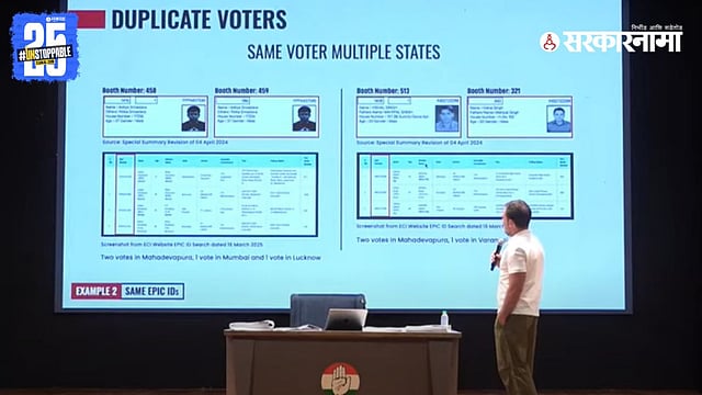 श्रीवास्तव नावाच्या एका मतदाराचे कर्नाटकसह महाराष्ट्र आणि उत्तर प्रदेशातही मतदान असल्याचा पुरावा राहुल यांनी दाखविला. असे अनेक मतदार असल्याचेही त्यांनी स्पष्ट केले. निवडणूक आयोगाकडून आम्हाला मतदारयाद्यांचा डिजिटल डेटा देण्यात आला नाही. त्यामुळे एकाच विधानसभा मतदारसंघातील मतदारयाद्यांची तपासणी करण्यासाठी सहा महिन्यांचा कालावधी लागला. 40 ते 50 जणांची टीम अव्याहतपणे मतदारयाद्यांची तपासणी करत असल्याची माहिती राहुल यांनी दिली.