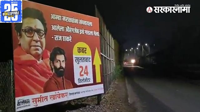 सकाळी हे निवदेन जिल्हाधिकाऱ्यांना दिल्यानंतर छत्रपती संभाजीनगर शहरातील प्रमुख चौक आणि औरंगजेबची कबर असलेल्या खुलताबादकडे जाणाऱ्या रस्त्यावर ठिकठिकाणी बॅनर लावण्यात आले आहे. मनसेच्या या बॅनरवर राज ठाकरे, अमित ठाकरे यांचे फोटो असून संभाजीनगर ते खुलताबाद येथील (Aurangzeb) औरंगजेब कबरीचे अंतर किलोमीटरमध्ये दर्शवण्यात आले आहे. आम्हा मराठ्यांना संपवायला आलेला औरंगजेब इथे गाडला गेला, असे या बॅनरवर ठळकपणे नमूद करण्यात आले आहे.