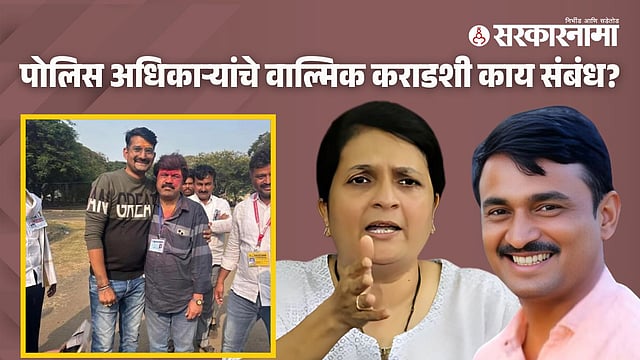 यातील महेश विघ्ने या पोलिस अधिकाऱ्याचा वाल्मिक कराड याच्यासोबतचा एक फोटो सामाजिक कार्यकर्त्या अंजली दमानिया यांनी ट्विट केला आहे. विघ्ने आणि कराडचा फोटो ट्विट करत संतोष देशमुख यांच्या खूनप्रकरणी नेमण्यात आलेली एसआयटी बरखास्त करण्यात यावी, अशी मागणी दमानिया यांनी केली आहे.