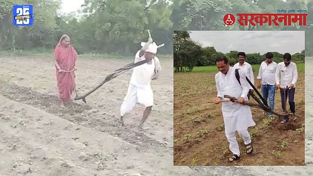 BJP leader ploughing video controversy : लातूर अहमदपूरमधील शेतकरी अंबादास पवार स्वतःला औताला जुंपून तो ओढताना, आणि त्यांना मदत करताना त्यांच्या पत्नीचा व्हिडिओ समाज माध्यमांवर व्हायरल झाला.