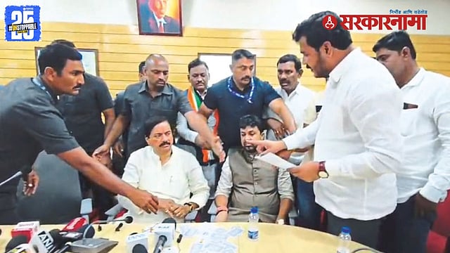 राष्ट्रवादी काँग्रेस पक्षाचे प्रदेशाध्यक्ष सुनील तटकरे (Sunil Tatkare) हे 'निर्धार नवपर्वाचा' या पक्ष संवाद दौऱ्याच्या निमित्ताने लातूरमध्ये आले होते. यावेळी त्यांची शासकीय विश्रामगृह येथे पत्रकार परिषद आयोजित केली होती. यानंतर छावा संघटनेच्या शेतकरी आघाडीचे विजयकुमार घाडगे-पाटील यांनी तिथे येऊन तटकरे यांच्यासमोर पत्ते उधळले. दरम्यान, तटकरे यांनी त्यांचे म्हणणे शांतपणे ऐकून घेतले. त्यांच्या निवेदनाचाही स्वीकार केला.