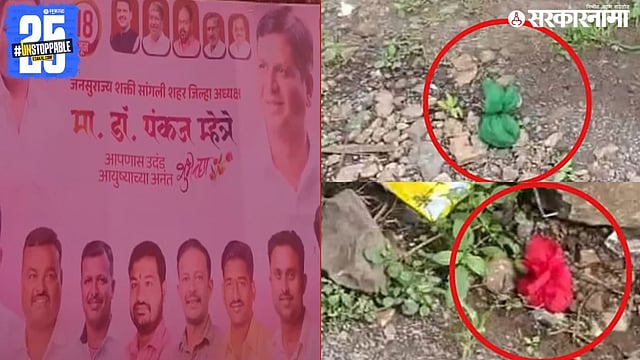हा धक्कादायक प्रकार मिरज शहरातील माळी समाजाच्या स्मशानभूमी शेजारी रविवारी (ता.22) उघडकीस आला. जनशराज्य शक्ती पक्षाच्या जिल्हाध्यक्षांच्या वाढदिवसाचे बॅनर खाली हा प्रकार झाल्याने शहरात एकच खळबळ उडाली असून चर्चांना उधान आले होते. मिजर शहरात जनस्वराज्य शक्ती पक्षाचे जिल्हाध्यक्ष डॉक्टर पंकज म्हेत्रे यांच्या वाढदिवसानिमित्त शुभेच्छांचे बॅनर शहरभर लागले होते.