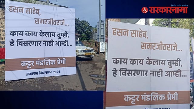 हसन साहेब..., समरजितराजे काय काय केलंय तुम्ही? हे विसरणार नाही आम्ही. अशी बॅनरबाजी करत थेट आव्हान दिलं आहे. येणारे विधानसभा निवडणुकीच्या पार्श्वभूमीवर मंडलिक गटाकडून दबाव तंत्र वापरले जात आहे. या बॅनरबाजीमुळे विधानसभा मतदारसंघातील राजकीय वातावरण पुन्हा एकदा उफाळण्याची शक्यता आहे.