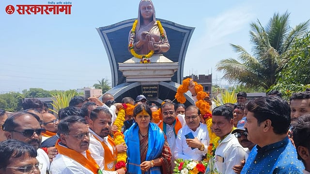 भाजपच्या नेत्या व माजी मंत्री पंकजा मुंडे Pankaja Munde यांची शिव -शक्ती परिक्रमा रॅली जेजुरीहून शिखर शिंगणापूरकडे जाताना आज (ता. ६) लोणंद Lonand येथे अहिल्यादेवी होळकर स्मारक चौकात आगमन झाले. सातारा जिल्ह्याच्यावतीने त्यांच्या रॅलीचे जंगी स्वागत करण्यात आले. त्यांनी येथील स्मारकातील अहिल्यादेवी होळकर यांच्या पुतळ्यास पुष्पहार घालून अभिवादन केले.