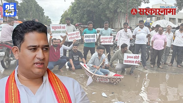 या पावसात कोपरगाव शहरातील अक्षरशः चाळण झाली आहे. नागरिकांना पायी चालताना देखील वाट काढणे मुश्लिक होत आहे. या सर्वांचा संताप युवकांनी आंदोलन करत व्यक्त केला. राष्ट्रवादी काँग्रेसचे (NCP) आमदार आशुतोष काळे यांना आंदोलकांनी टार्गेट केले. रस्त्यांवर साचलेल्या खड्ड्यांमधील पाण्यात होडी सोडून त्यात आंदोलकांनी बसून निषेध केला.