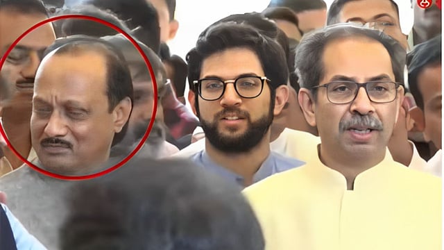 Maharashtra Budget 2023 : उपमुख्यमंत्री देवेंद्र फडणवीस यांनी शिंदे सरकारचा पहिला अर्थसंकल्प विधानसभेत सादर केला. यावेळी फडणवीसांनी विविध घोषणा केल्या. यावर विरोधी पक्षनेते अजित पवार यांनी सडकून टीका केली. यावेळी उद्धव ठाकरे माध्यामांशी बोलतांनाचा अजित पवार यांचा एक क्षण कॅमेऱ्यात कैद झाला आहे.