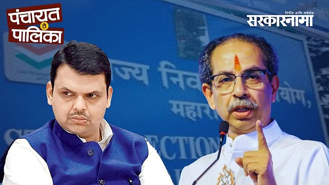 The image shows a press briefing on the sudden postponement of civic elections in 12 Maharashtra districts. The scene highlights rising political tension surrounding the Maharashtra civic polls. Sarkarnama