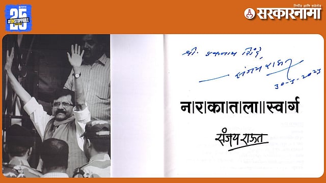 संजय राऊत यांचे एकेकाळचे मित्र व त्याच काळातील शिवसेनेतील त्याचे सहकारी एकनाथ शिंदे यांना “ नरकातला स्वर्ग “ या पुस्तकाची प्रत पाठवली. शिंदे व सुरत गुवाहटी ला गेलेल्या त्यांच्या सर्व मंडळीनी हे पुस्तक जरूर वाचावे, असे टोला लगावण्यास राऊत विसरले नाहीत.