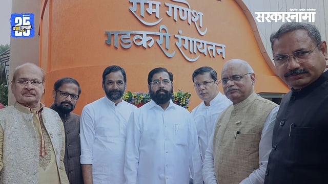 BJP MLA Sanjay Kelkar at the Gadkari Rangayatan renovation event in Thane, where he criticized Shinde Sena over the showcased film, sparking political controversy. Sarkarnama