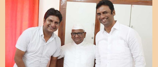 नगर : 'मी कोणाच्याही खांद्यावर हात ठेवत नाही. शंकरराव गडाख हे पहिले मंत्री आहेत, की ज्यांच्या खांद्यावर मी स्वतः जाणीवपूर्वक खांद्यावर हात ठेवला आहे. त्यांच्यामागे ज्येष्ठ नेते यशवंतराव गडाख यांच्या कामाची पुण्याई आहे,' असे आशीर्वाद ज्येष्ठ समाजसेवक अण्णा हजारे यांनी गडाख बंधुंना दिले.