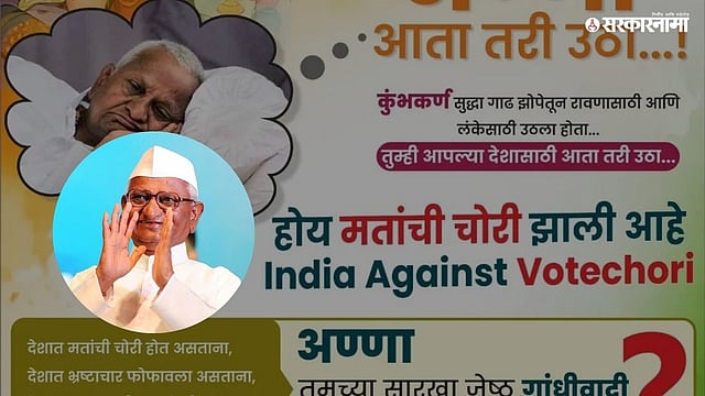 अण्णा, दिल्लीच्या जंतर-मंतर मैदानावर पुन्हा तुमचा जादू पाहण्यासाठी देश आतुर आहे.होय मतांची चोरी झाली आहे India Against Votechori बाबतचा आंदोलन आम्ही बघण्यासाठी उत्सुक असल्याचं म्हणत एक प्रकारे पुणेरी टोला या पोस्टरच्या माध्यमातून अण्णा हजारेंना लगावला असल्याचं बोललं जात आहे.