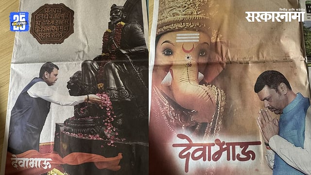 तर काही वृत्तपत्रातीत ते गणपती बाप्पाला नमस्कार करतानाचा फोटो होता. या जाहिरातीमध्ये फोटो खेरीज फक्त मजकूर स्वरूपात 'देवाभाऊ' इतकच लिहिलं होतं. त्यामुळे ही जाहिरातबाजी नेमकी कोणी केली? याबाबत चर्चा राजकीय वर्तुळात मोठ्या प्रमाणात रंगल्या आहेत.