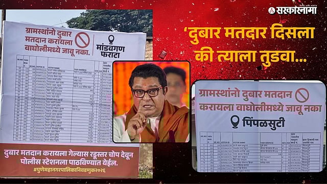 Pune Municipal Election 2026: ‘दुबार मतदार दिसला की त्याला तुडवा,’ असे मनसेचे प्रमुख राज ठाकरे यांनी जाहीरसभेत सांगितले आहे. त्यानंतर दुबार मतदान टाळण्यासाठी पुणे जिल्ह्यातील गावकऱ्यांनी आता पुढाकार घेतला आहे. गावकऱ्यांनी आपल्या गावातील मतदारांची नावे पुणे महापालिकेच्या निवडणूक यादीत आहे, अशा दुबार मतदाराच्या नावाचा फलक लावला आहे. या बॅनरबाजीमुळे संपूर्ण गावासह आसपासच्या परिसरात जोरदार चर्चा सुरू झाली आहे.