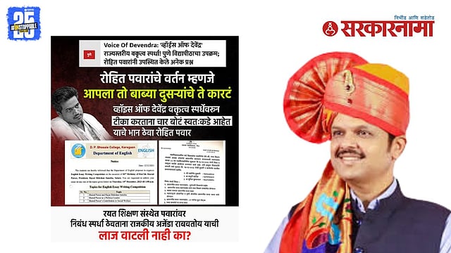 'शरद पवारांनी रयत संस्था बळकावली आणि इतकंच नव्हे, तर संस्थेच्या कॉलेजमध्ये पवारांचे गोडवे गाणारे विषय घेऊन स्पर्धा आयोजित केल्या जातात, याचा विसर रोहित पवारला पडलेला दिसतोय!', असेही टीम देवेंद्रने समाज माध्यमांवर म्हटलं आहे.