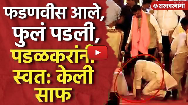 मुख्यमंत्री देवेंद्र फडणवीस हे आज सांगली दौऱ्यावर होते. स्टेजवर त्यांचे स्वागत करताना फुल खाली सांडली होती. यावेळी आमदार गोपीचंद पडळकरांनी स्वत: साफ केल्याचे पाहायला मिळाले. नेमकं काय घडलं पाहा...