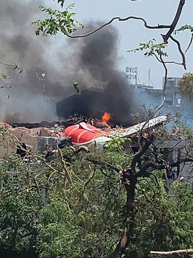 अपघातानंतर विमानाने पेट घेतल्याने परिसरात भीषण आग व काळा धुर पाहायला मिळाला. स्थानीय लोकांनी घेतले भयावह दृश्यांचे व्हिडिओ.