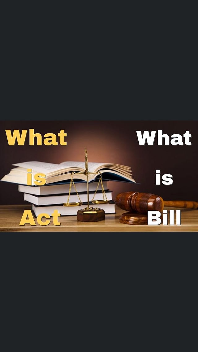 कायद्यासमोर मांडलेला प्रस्ताव कायदा बनतो त्याला विधेयक म्हणतात. तर अॅक्टला कायदा म्हणतात.