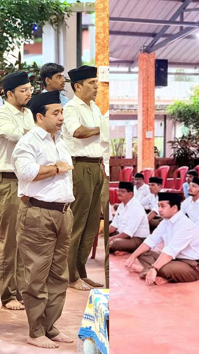 याचवेळी राज्यभर राष्ट्रीय स्वयंसेवक संघांचा दसरा मेळावाही होत आहे. अशाच एका मेळाव्यात पहिल्यांदाच मंत्री नितेश राणे दिसले.