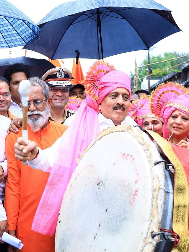 या दरम्यान मुसळधार पावसाची सरी बरसत अशतानाही त्यांना ढोल वाजविण्याचा मोह आवरलं नाही. भर पावसात त्यांनी ढोल वाजून मिरवणुकीला सुरुवात करून दिली.