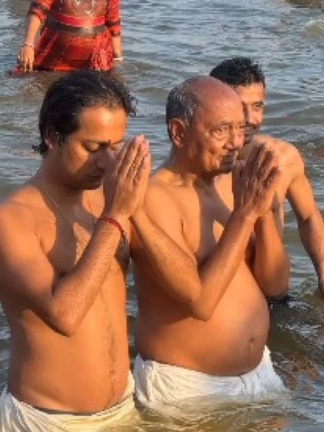 माघ पौर्णिमेच्या निमित्ताने, दिग्विजय सिंह आणि त्यांचा मुलगा जयवर्धन सिंह यांनी पवित्र स्नान केले.