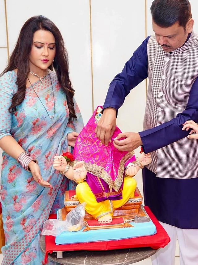 फडणवीस परिवाराने घरी पारंपरिक पद्धतीने गणेशोत्सवाची सुरुवात केली.