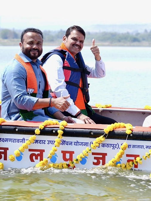 यावेळी आंधळी धरणातील या प्रकल्पाची फडणवीसांनी होडीतून पाहणी केली.