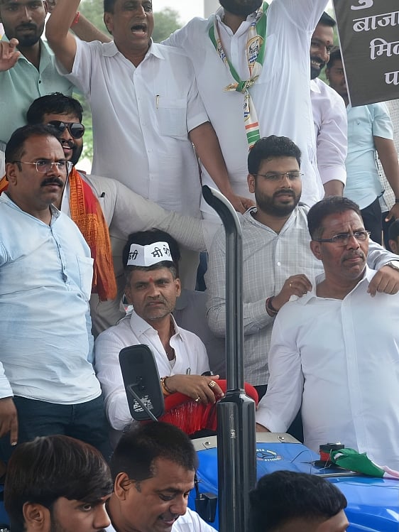 खासदार नीलेश लंके यांच्या पत्नी राणी लंके या देखील ट्रॅक्टर चालवत मोर्चात सहभागी झाल्या होत्या.