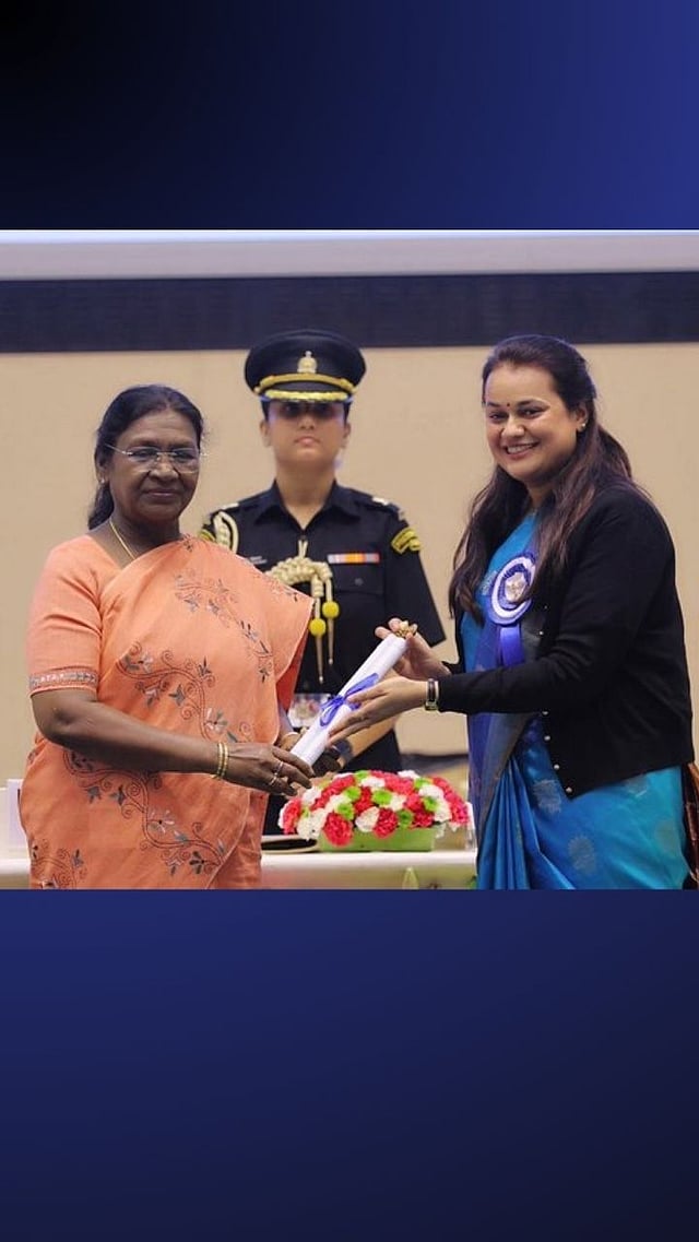 राष्ट्रपती द्रौपदी मुर्मु यांच्या हस्ते टीना डाबी यांना ‘कॅच द रेन – रेन वॉटर हार्वेस्टिंग’ मोहिमेसाठी विशेष पुरस्कार प्रदान करण्यात आला.