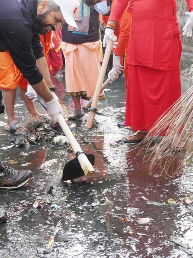 कुंभमेळा विकास प्राधिकरणचे आयुक्त शेखर सिंह यांच्यासह साधू-महंतांनी देखील स्वच्छता मोहीमेत सहभाग घेतला.
