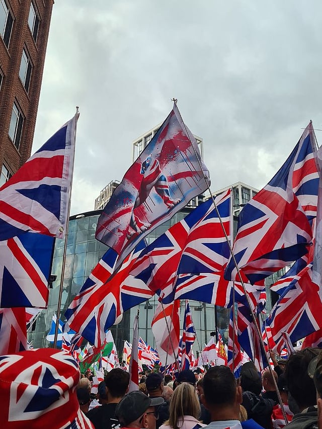 ज्यामध्ये स्थलांतर विरोधी कार्यकर्ते टॉमी रॉबिन्सन यांच्या नेतृत्वाखाली निदर्शने करण्यात आली.