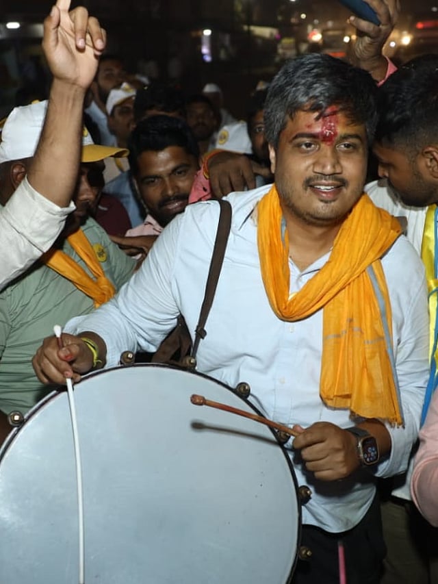 युवा संघर्ष यात्रेदरम्यान नगर येथील जामखेडमध्ये रोहित पवारांनी हलगी वाजवण्याचा आनंद घेतला.