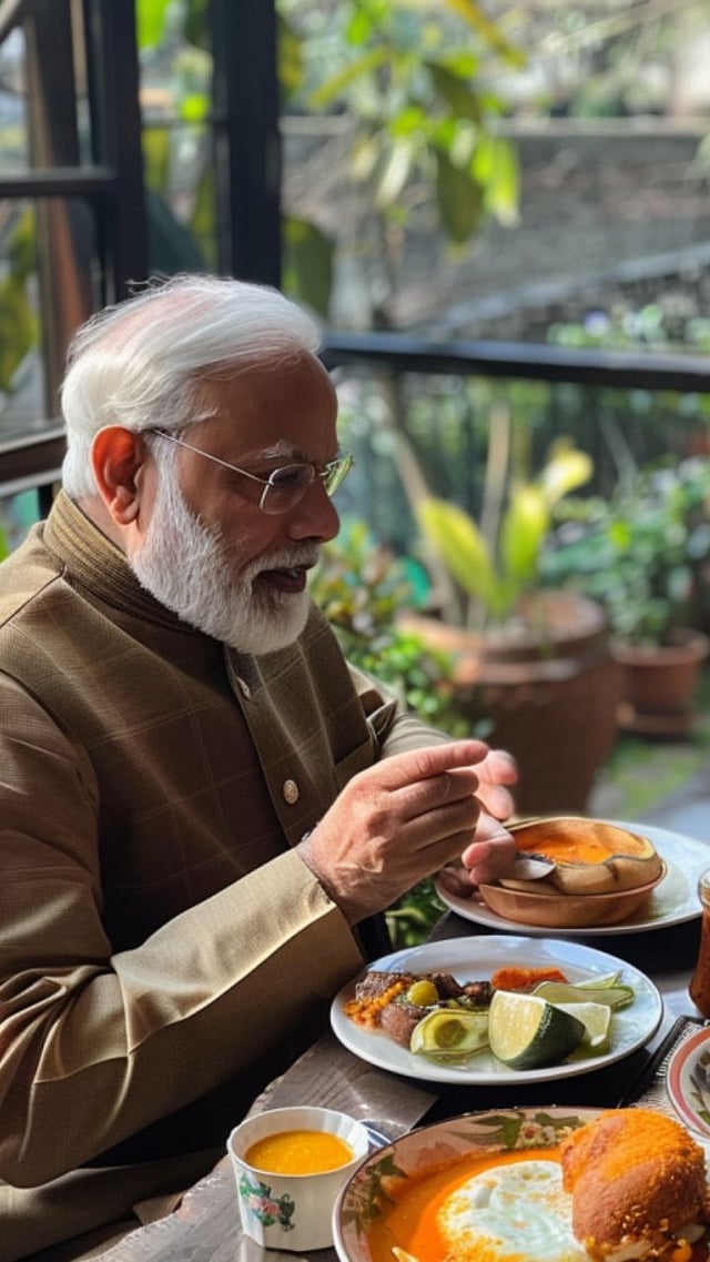 मोदीजी साधे व संतुलित अन्न घेतात. ते तेलकट, तिखट पदार्थ टाळतात आणि नेहमी हलके व पौष्टिक खाण्यावर भर देतात.