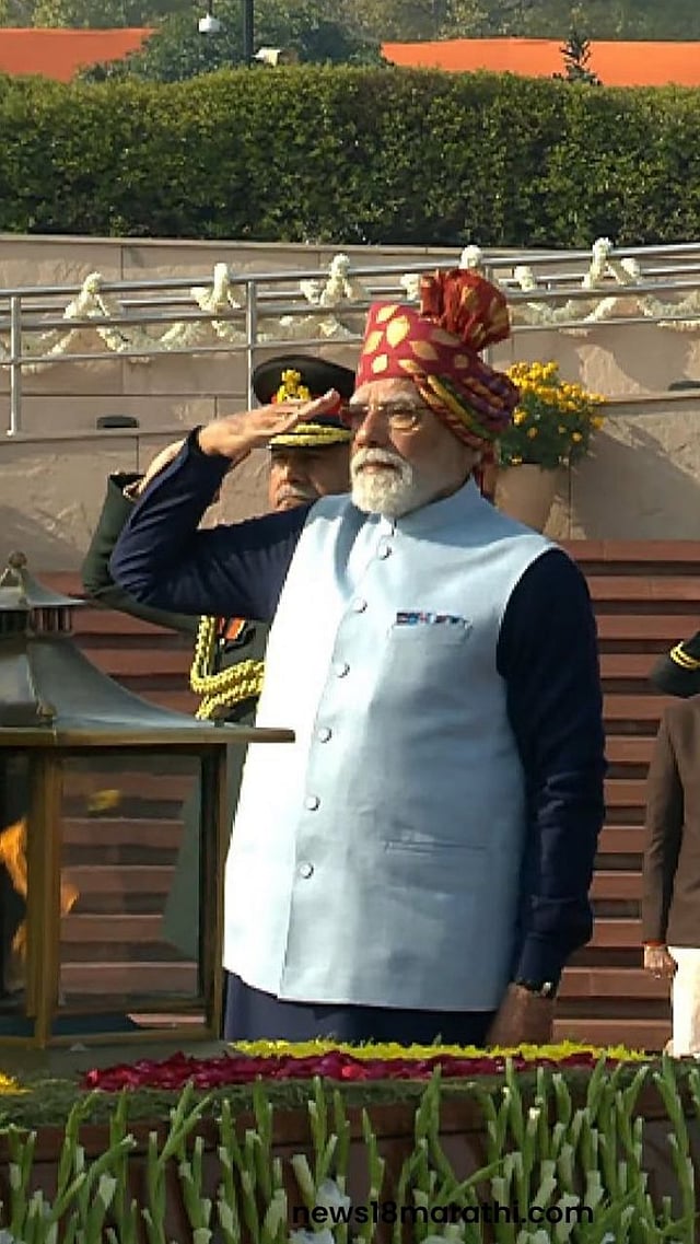 प्रजासत्ताक दिवस 2026 रोजी पंतप्रधान मोदी साधेपणाचा सुंदर संगम या पोशाखात दिसले.