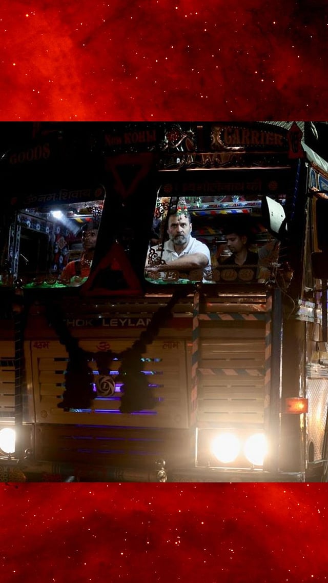राहुल गांधींनी सोमवारी रात्री ट्रकमधून प्रवास केला आहे. हे फोटो शेअर करत काँग्रेसने, 'आपके राहुल गांधी, आपके बीच' अस ंकॅप्शन दिले आहे.