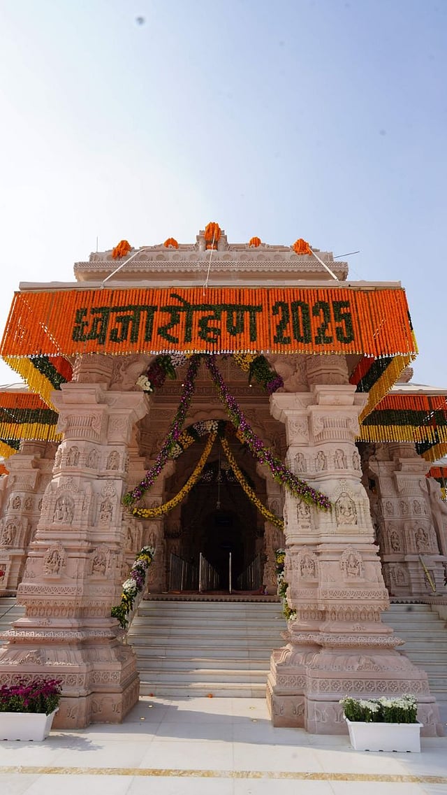 ध्वजारोहण सोहळा राम विवाह पंचमीच्या शुभ मुहूर्तावर, अभिजीत मुहूर्तात सकाळी 11:45 ते दुपारी 12:29 यावेळेत पार पडला.