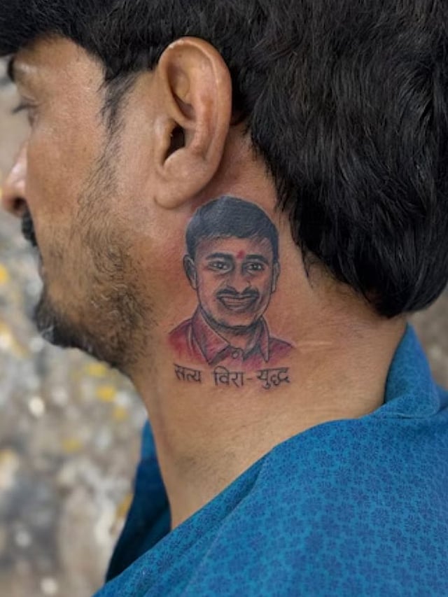धनंजय यांनी आपल्या मानेवर संतोष देशमुख यांचा काढलेल्या टॅटूमध्ये यात संतोष यांचा हसरा चेहरा आहे.
