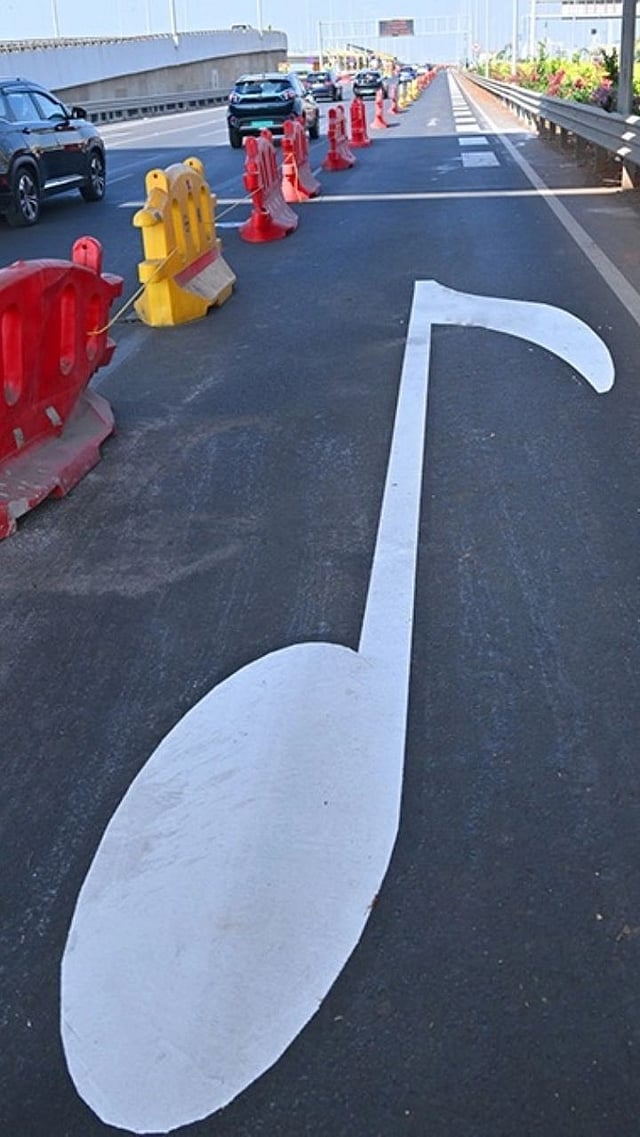 या मार्गावरून उजवीकडील मार्गिकेवर प्रवास करताना संगीतमय रस्त्याचा अनुभव येणार आहे.