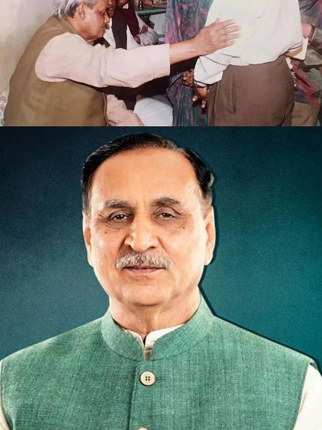 विजय रुपाणी यांचे विमान अपघातात नुकतेच निधन झाले आहे. त्यांचे फोटो व्हायरल होत आहेत. अटल बिहारी वाजपेयी यांच्यासोबतचे त्यांचे छायाचित्र आहे.