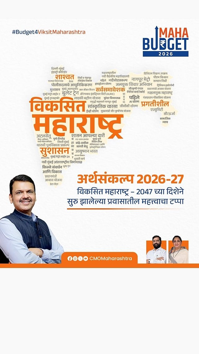 कर महसुलात २०२५-२६ अंदाजानुसार, ४,०९,५९३ तर पुढील वर्षी २०२६-२७ या काळात ४,१५,६५३ कोटींचं उद्देश असल्याचं फडणवीसांनी सभागृहात जाहीर केलं. म्हणजे पुढच्या वर्षासाठी तब्बल ६०६० कोटींच्या वाढीचं टार्गेट ठेवण्यात आलं आहे.