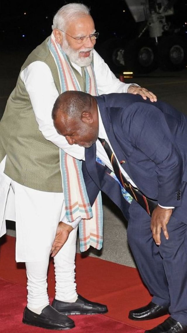 पापुआ न्यू गिनीमध्ये सूर्यास्तानंतर कोणत्याही पाहुण्याचं स्वागत केलं जात नाही. पण पंतप्रधान मोदींच्या स्वागतासाठी जेम्स मारापे स्वत: विमानतळावर उपस्थित होते.
