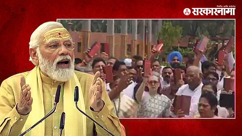 अधिवेशनाच्या पहिल्याच दिवशी विरोधकांनी संसदेच्या आवारात आणि सभागृहातही जोरदार घोषणाबाजी केली. लोकसभेमध्ये पंतप्रधान मोदी सदस्यत्वाची शपथ घेण्यासाठी उठताच इंडिया आघाडीच्या सदस्यांनी हातात संविधानाची प्रती घेत उभे राहून घोषणा दिल्या. तसेच संसदेच्या आवारातही विरोधकांनी एकत्रित येत हातात संविधान घेऊन घोषणाबाजी केली.