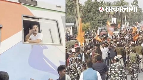 राहुल गांधींची (Rahul Gandhi) 'भारत जोडो न्याय यात्रा' आसाममधील सुनीतपूर भागातून प्रवास करत आहे. यावेळी भाजपच्या काही कार्यकर्त्यांनी त्यांचा ताफा अडवला. तसेच मोदी- मोदींचे नारे दिले. यानंतर राहुल गांधी हे बसमधून उतरल्याचं व्हिडिओत दिसत आहे. मात्र, तेथील गर्दी पाहता सुरक्षारक्षकांनी लगेचच राहुल गांधी यांना पुन्हा बसमध्ये बसवलं.