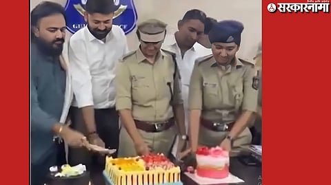 व्हिडिओ फुटेजमध्ये डीसीपी कानन देसाई गुजरातच्या अहमदाबादेतील पोलीस स्टेशनमध्ये पोलिस कर्मचाऱ्यांसोबत भाजप नेत्याचा वाढदिवस साजरा करताना दिसत आहेत.