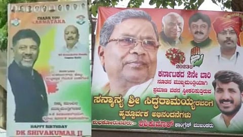 Karnataka Congress Poster War: विधानसभा निवडणुकीत काँग्रेसने कर्नाटकात मोठा विजय मिळवला आहे. आता मुख्यमंत्री कोण होणार यावरुन राज्यात काँग्रेसअंतर्गत संघर्ष सुरु झाला आहे. मुख्यमंत्रीपदावरुन काँग्रेसचे प्रदेशाध्यक्ष डी.के.शिवकुमार आणि माजी मुख्यमंत्री सिद्धरामय्या यांच्यात रस्सीखेच सुरु आहे.