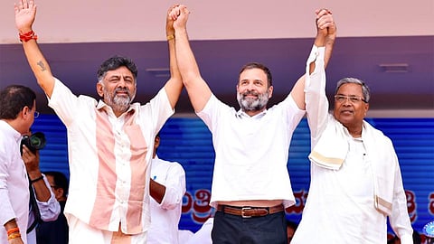 Karnataka Cabinet Oath Ceremony : काँग्रेसचे नेते सिद्धरामय्या यांनी कर्नाटच्या मुख्यमंत्री पदाची दुसऱ्यांदा शपथ घेतली. तर कर्नाटक काँग्रेसचे प्रदेश अध्यक्ष डी. के. शिवकुमार यांनी उपमुख्यमंत्री पदाची शपथ घेतली. यानंतर मुख्यमंत्री आणि उपमुख्यमंत्री हे विधानसभेत गेले.