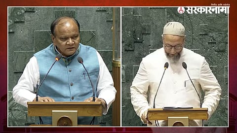 AIMIM चे प्रमुख आणि खासदार असदुद्दीन ओवैसी यांनी मंगळवारी शपथ घेतली. यावेळी त्यांनी जय पॅलेस्टाईनचा नारा दिला. शपथ घेतल्यानंतर त्यांनी सर्वात जय भीम म्हटले. त्यानंतर जय मीम, जय तेलंगणा आणि जय पॅलेस्टाईनचा नारा दिला. ओवेसींनी पाचव्यांदा लोकसभा सदस्यत्वाची शपथ घेतली. यावेळी त्यांची शपथ वादात सापडली आहे.