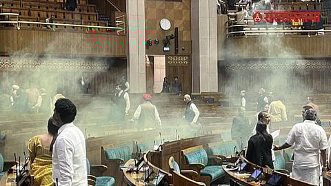 लोकसभेत शून्य प्रहाराचे कामकाज सुरु होते. तीन अज्ञात व्यक्ती अचानक सभागृहात घुसल्याने खळबळ उडाली.एकाने बुटातून काही तरी गॅस काढला, सभागृहात स्प्रे मारला. त्यामुळे उपस्थित खासदारांच्या नाकात जळजळ सुरु झाली. त्यांनी पिवळ्या रंगाचा गॅसही फोडला. त्यामुळे संसद भवन परिसर पिवळा झाला होता.