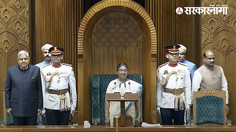 राष्ट्रपदी द्रौपदी मुर्मू यांचे संसदेत अभिभाषण झाले. त्याआधी संसदेत दाखल झाल्यानंतर राष्ट्रगीत सुरू झाले. पण त्यावेळी लोकसभेचे अध्यक्ष ओम बिर्ला आपल्या जागेवर पोहचले नव्हते. राष्ट्रगीत सुरू झाल्यानंतर ते आपल्या जागेवर जाण्यासाठी चालतच राहिले. हे दृश्य संसद टीव्हीच्या कॅमेरात कैद झाले आहे.