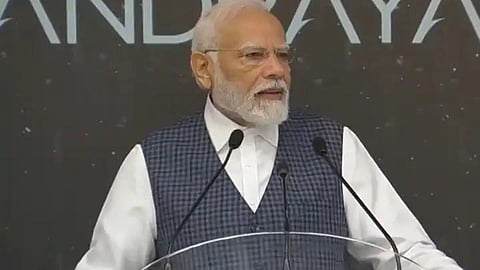 मोदी म्हणाले, " "आता भारत चंद्रावर आहे, चंद्रावर आपला राष्ट्रीय अभिमान असून ज्या ठिकाणी कोणी गेले नव्हते तिथे आपण गेलो आहोत. आपण ते केले जे यापूर्वी कोणी केले नव्हते. हा आजचा भारत, निर्भय भारत, लढणारा भारत आहे. नव्या पद्धतीने विचार करणारा हा भारत आहे. जो डार्क झोनमध्ये जाऊनही जगात प्रकाशकिरण पसरवतो,"